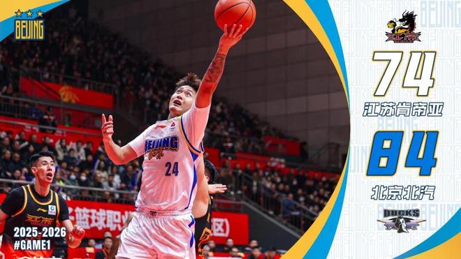 新赛季开门红!北京北汽客场84:74战胜江苏肯帝亚。
