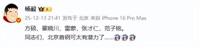 难怪看到这样的局面,外界都在吐槽了,连名嘴杨毅都忍不住了,直言:北京首钢太有潜力了……