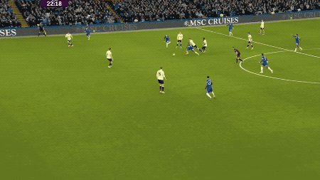 第21分钟,福法纳策动进攻,古斯托送出妙传,帕尔默冷静破门,打进了复出后的首个进球。
