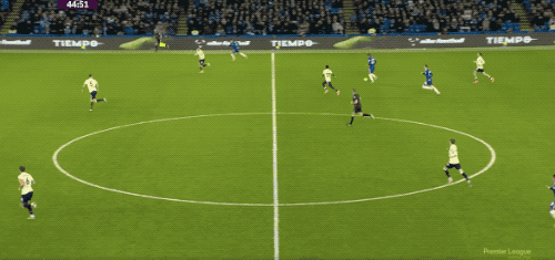 第55分钟,桑切斯送出长传,加纳乔利用速度甩开奥布莱恩,直面皮克福德,但最后的射门却打高了。